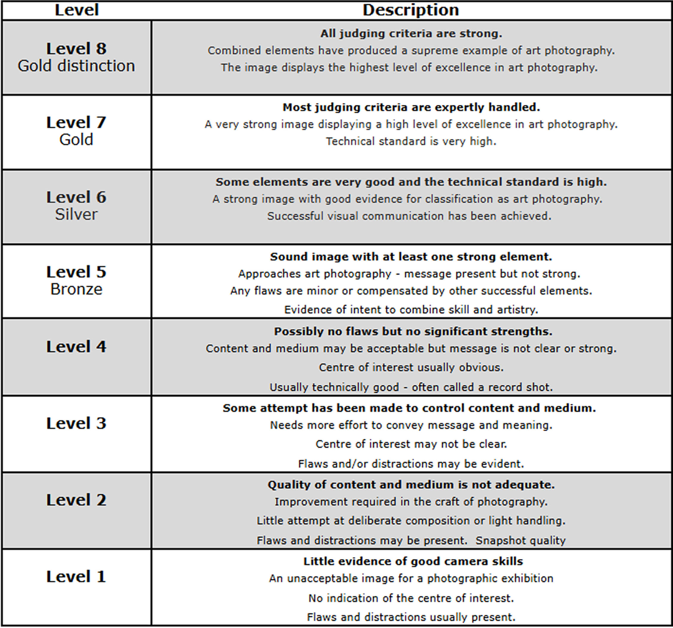 Judges play a critical role in this development pathway, because it is their comments that educate and assist photographers in their journey to master the art of photography.